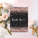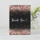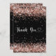 Um fundo preto, um confete rosa de ouro falso decorado. Na frente, o texto escrito em letras grandes e o texto: Obrigado com coração. Voltar: Personalize e adicione sua nota de agradecimento e seu nome. O nome é escrito com um moderno estilo escrito à mão. Texto branco.