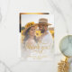 Expresse sua sincera gratidão em estilo com nosso Cartões de agradecimentos Boho Wedding Script, exclusivamente projetado para sua loja Zazzle. Este cartões de agradecimentos elegante apresenta as suas fotos favoritas de casamento na frente e atrás, fazer que seja um bem-estar apreciado para os seus convidados. A frente mostra uma bela tipografia *"Obrigado!" em uma fonte de roteiro suave juntamente com seus nomes e data de casamento, combinando perfeitamente encanto de vassoura com elegância moderna. No verso, personalize sua mensagem de apreço ao lado de outra foto personalizada e seu próprio texto. Perfeito para casamentos de vassoura, celebrações rústicas, ou qualquer evento com vibrações naturais e românticas, esta carta adiciona um toque pessoal e pensativo à sua suíte de papelaria de casamento. Impresso em um estoque de cartão de alta qualidade com reprodução de fotos vibrante, é uma forma na moda de dizer obrigados e compartilhar memórias. O gradiente branco sob o texto facilita a leitura. Esta camada de fotos é opcional e pode ser ocultada na dentro da ferramenta design. O coração sobre a "assinatura" dos casais no verso pode ser facilmente mudado para a cor desejada. Compre agora e faça seu obrigado de casamento único seu!