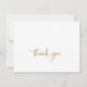 Este cartões de agradecimentos rústico de guião de ouro é perfeito para um casamento country. O simples e moderno design de ouro e branco apresenta uma única caligrafia manuscrita branca com estilo de boho minimalista contemporâneo. Personalizável em qualquer cor. Mantenha o design mínimo e simplista, como está, ou personalize-o adicionando seus próprios gráficos e trabalhos de arte. Personalize a parte traseira do cartão com seus nomes e uma mensagem de obrigado. Como alternativa, deixe o vazio da seção modelo da mensagem do obrigado para escrever uma nota personalizada em cada cartão após a sua chegada. Essas cartas podem ser usadas para um casamento, chá de panela ou qualquer evento especial.