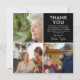 Um cartões de agradecimentos especial, mas moderno, para entregar ou enviar para a família e amigos que mostraram amor, bondade e apoio durante o seu tempo de luto. Apresentando 4 fotografias quadradas da vida de seus entes queridos, e um simples obrigado, você envia uma mensagem de modelo que pode ser facilmente personalizado em um fundo preto que pode ser mudado para qualquer cor. Ao contrário, está uma grande fotografia do seu familiar que infelizmente passou, uma sobreposição com o seu nome e datas de vida em tipografia branca. Faz uma bela manutenção para as pessoas tesourarem.