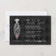 Tema de Casamento Negro Uma história de amor nunca termina a tipografia com símbolo de vidro de diamante adorado com emblema rubi e nó de amor. BACK: A gravata de Diamond olha com ruby acentos amados, amor, gravata monograma, e belas velhas de diamante preto, olha para o fundo com a mensagem de obrigado eloquente.