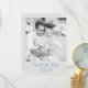 Este belo e moderno cartão 'obrigado você' mostra uma imagem de casal e duas fontes complementares em cinzas azuis e leves empoeiradas. A parte traseira apresenta um fundo de cor de areia bege com mensagem de texto de cinza que você pode editar se quiser. Personalize o texto, as cores e a foto para torná-lo realmente especial.