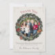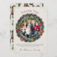 Este festivo Cartões de agradecimentos de Natal apresenta ilustrações ocidentais desenhadas à mão de uma coroa pinheira com botas de vaqueiro, chapéu de vaqueiro, amoras ocas, cactos e ornamentos de Natal vintage a tinta preta. Carregue sua própria foto da família e edite o texto para torná-lo exclusivamente seu. O verso apresenta um padrão fofo desses elementos do país. Fundo de marfim elegante.