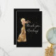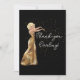 Uma elegante e fofinha celebridade de glamour com vestido de ouro em um fundo preto com uma mensagem especial Obrigado