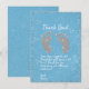 Mostre seu apreço com este cartões de agradecimentos azul na moda e prateado brilhante, projetado para corresponder perfeitamente aos convites de chá do seu bebê. Apresentando as mesmas pegadas brilhantes azuis charmosas, este cartão é uma maneira sincera de obrigado aos seus convidados por celebrar o seu homenzinho.