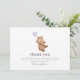 Um cartões de agradecimentos fotográfico com um urso doce segurando um balão roxo. Ideal por agradecer aos seus convidados por terem vindo à sua festa de primeiro aniversario!