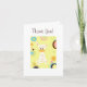 Bebê muito bonito "obrigado você" carda o girafa do divertimento de caracterização com fundo amarelo bonito. Aperfeiçoe para enviar para presentes do chá de fraldas. Convites e etiquetas de harmonização do chá de fraldas See!