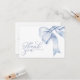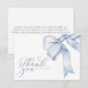 Procurando uma maneira encantadora de expressar sua gratidão após um chá de fraldas? Descubra nossas elegantes cartas de agradecimento com um sofisticado design azul arco. Este cartão personalizado adiciona um toque de sofisticação e pode ser personalizado para comemorar perfeitamente o dia especial do seu filho. Ideal para um chá de fraldas elegante, seu estilo mínimo garante uma mensagem clássica e sincera.