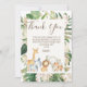 Cartões de agradecimentos do Boho Greenery Safari Chá de fraldas Cute faux gold e safari de folhagem verde cartões de agradecimentos com o tema de chá de fraldas, apresentando quatro animais de safari fofinhos e uma dica de folhas de palma de boho em tons naturais.