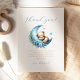 Este cartões de agradecimentos de chá de fraldas bonitinho apresenta um doce ursinho d'água dormindo em uma lua azul crescente decorada com flores, abaixo das palavras "obrigado você" em roteiro azul de caligrafia. Personalize o texto com a sua mensagem na fonte sans serif e na linha de assinatura no script em um plano de fundo bege. Ideal para o chá de fraldas de um menino.