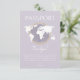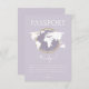 Viagem com o tema Gênero Chá de fraldas de Passaporte Neutro de Homens - Obrigado pela placa com fundo de lavanda suave, ilustração do globo com acento dourado e detalhes de evento personalizáveis.