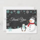 Cartões de agradecimentos do floco de neve do feriado do Natal do inverno. Boneco de neve e pinguim. Fundo do quadro. Preto e branco. Floco de neve do Aqua. Amor e obrigados, pia batismal bonita do roteiro. Adicione sua mensagem sobre suportam ou deixam o vazio e a mão escreve. Para uma personalização mais adicional, clique por favor "personalizam-no" botão e usam-nos nossa ferramenta de design para alterar este modelo.