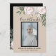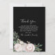 Este convite para Cartões de agradecimentos do Memorial apresenta uma rosa rosa-rosa-pia-pincelada, folhas verdes-peludas, flores rústicas selvagens sobre fundo bege elegante e texto escrito à mão preto, amor e obrigados. Adicione uma foto do seu amado ao quadro preto. Na parte de trás deste elegante cartões de agradecimentos funerário, adicione seu obrigado pela sua apreciação de ajudar durante um período difícil. O reverso deste Cartões de agradecimentos contém um delicado buquê de cor d'água, lavado, de rosas e flores rústicas com fundo preto.