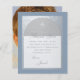 Um primeiro convite à comunhão moderno. Em um fundo retangular azul empoeirado, ele tem um arco de folha de alumínio prateado falso que tem dentro azul empoeirado sobre fundo branco. As palavras "Obrigado" e o nome são escritos num guião caligráfico elegante; o resto em bonés. No verso há uma foto marcante de um garoto, de Pixabay, que é gerado por computador (não uma pessoa real) e gratuito para uso comercial.