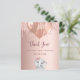 Um cartões de agradecimentos para um Chá de fraldas. Uma cor de fundo rosa dourada. Decorado com balões e uma linda menina elefante. Voltar: Personalize e adicione seu nome e nota de agradecimento. 1 folha = 1 cartões de agradecimentos impresso borda a borda.