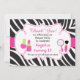 Um Cartões de agradecimentos Pamper giro para obrigado seus convidados para assistir à ocasião especial que inclui um fundo de impressão zebra com uma banda rosa através do meio e um quadro de ornamentado no centro. O texto pode ser alterado de acordo com suas próprias necessidades. Um Convite correspondente também está disponível. Trabalho de arte por ClipArtopia e PixelPaperPrints (116)