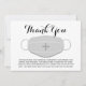Diga a um profissional de saúde o quanto você os aprecia com este Cartões de agradecimentos que apresenta uma máscara cirúrgica e uma mensagem doce. Quer tenha sido cuidado durante o combate ao Coronavírus COVID19 ou a qualquer outra doença que você ou sua família tenham experimentado, esta nota informá-los-á como se sentem. O texto na parte inferior pode ser deixado como está ou personalizado com seus próprios pensamentos.