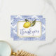 Obrigado Nota Cartões com limões de aquarela complementados por um padrão clássico de azulejo azul/branco da Tuscan com letra moderna e escrita à mão. Personalize com sua própria redação/detalhes! Para mais personalização, clique no botão "Personalizar" e use nossas ferramentas de design para modificar este modelo. Nem todo trabalho de arte e texto podem ser modificados.