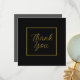 Cartões de agradecimentos clássico de casamento preto e ouro. A frente do cartão de casamento tem "Obrigado." A parte traseira tem espaço para sua mensagem junto com o nome do casal. Excelente para casamentos, eventos especiais, assim como aniversários de casamento. Use a modelo para personalizar.