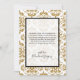 Este design apresenta um padrão elegante de vintage dourado. O texto preto é enquadrado com uma borda preta e fundo branco opaco. O padrão de ouro damasco fica elegantemente ao fundo. A combinação das cores preto e dourado cria um estilo sofisticado, modesto e chic. Design de casamento elegante com elementos modernos. A configuração simples da tipografia lhe dá um estilo distinto. Os convites de casamento e outros artigos de papelaria também estão disponíveis.