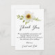 A design apresenta uma elegante flor de aquarela em tons de branco, ouro e champanhe em folhas verdes e uma pequena frase de obrigados que você pode substituir por seu próprio texto