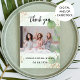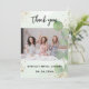 Um Chá de panela moderno Obrigado cartão com fotos. Um fundo verde impermeável, decorado com um som de eucalipto. Personalize e adicione sua foto e obrigado nota.