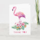 Mande um doce obrigado com este cartão de chá de fraldas flamingo tropical! Apresentando um flamingo cor-de-água em flores vibrantes e verde, este cartão é perfeito para expressar gratidão após um verão, luau, ou celebração com temas tropicais. Personalize o dentro com sua mensagem personalizada. Coordena-se com a Coleção de Chás de fraldas Flamingo de cheio.