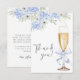 Cartões de agradecimentos Floral Azul com um copo de champanhe e arco azul