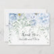 Cartões de agradecimentos de Casamento - As ilustrações do estilo aquarela apresentam flores azuis e brancas, incluindo rosas e híbridos, complementados por folhas e caules verdes. As flores são graciosamente arranjadas em cascata a partir do topo, criando uma estética elegante e macia.