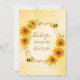 Um cartões de agradecimentos para um Chá de panela de verão. Girassóis de cor rústica amarela e laranja, de cor aquática, em um padrão de favos de mel. Com uma falsa estrutura geométrica dourada. Com o texto: Obrigado e Noiva a Bee, escritos com um moderno estilo escrito à mão. Personalize e adicione o nome da noiva. Letras castanhas. Voltar: Sua nota de agradecimento e seu nome.