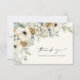 Este elegante cartões de agradecimentos de inverno de boho apresenta lindas folhas azuis e bagas pintadas à mão, flores de anêmona creme, verde de sábado e pinecones organizados como um quadro de na moda num marfim | fundo creme. Encontre itens correspondentes na Coleção Floral de Azul de Inverno.