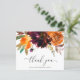 Cartões de agradecimentos de compaixão do orçamento floral russo que apresenta um buquê floral pintado de cor d'água com tons quentes e úmidos de laranja queimada, terracota e burgundy profunda junto com um pouco de verde. Use a modelo para adicionar sua mensagem de obrigado personalizada. Este Cartões de agradecimentos elegante com os ricos tons do outono é excelente para um funeral/memorial de outono.