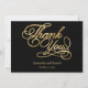 Um cartões de agradecimentos de casamento preto formal e elegante com um roteiro de caligrafia em ouro falso.