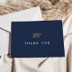 Este cartões de agradecimentos formando azul-marinho de boné chic é perfeito para uma festa de formatura moderna. O simples design apresenta a tipografia clássica azul e branca do marinho com um chapéu de graduação de aquarela preta e dourada. Deixe o vazio traseiro gravar uma mensagem pessoal ou mande imprimir uma obrigado na parte traseira.