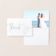 Moderno e mínimo, esse papel branco premium e cartões de agradecimentos de casamento rico em folha de prata permitem compartilhar suas fotos de casamento de praia (ou qualquer outra!) no estilo clássico. A folha de papel simples e estilizada "Obrigado" na frente e a dentro de fotos de casamento opcional surpresa personalizada irão encantar seus amigos e família. Este cartão com fotos de casamento é perfeito para fotos de casamentos de temas costeiros ou de praia, mas também pode ser usado como cartões de agradecimentos de noivado, ou qualquer outra coisa, na verdade! Tão minimalista e versátil. E é completamente personalizável para ajustado da sua vibração de casal pessoal.
