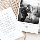 Compartilhe a alegria incontornável do seu casamento com este cartões de agradecimentos de fotos moderno e chique. O design apresenta de forma destacada a sua fotografia canalizada favorita, capturando perfeitamente um momento de pura felicidade da sua celebração. Abaixo da imagem, a frase "ASSUSTADO COM AMOR." é elegantemente afirmada, seguida de um monograma na moda com suas iniciais, acrescentando um toque pessoal sofisticado. O reverso continua o tema moderno e sincero com um belo obrigado que você escreve em uma delicada letra manuscrita. Contrastada com títulos clássicos de serifa, a nota pessoal expressa sua gratidão para com a família e amigos pelo seu amor e apoio. Todo texto, incluindo a mensagem e seus nomes, é totalmente personalizável. Este cartão é a forma perfeita de compartilhar um vislumbre do seu dia alegre e enviar um obrigado caloroso e pessoal para os seus entes queridos.