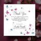 Oferecendo um toque macio e feminino a este elegante funeral, cartas de agradecimento apresentam pequenas borboletas em tons mudos de rosa e azul. Uma maneira adorável de mostrar apreço por todo o amor e apoio que você recebeu.