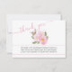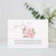 Cartões de agradecimentos funerário com elegante guião manuscrito e arranjos de aquarelas de flores rosa. O modelo está preparado para você adicionar uma foto 'em memória amorosa' às costas com o nome de seu ente querido, assim como sua mensagem personalizada de obrigados na frente.