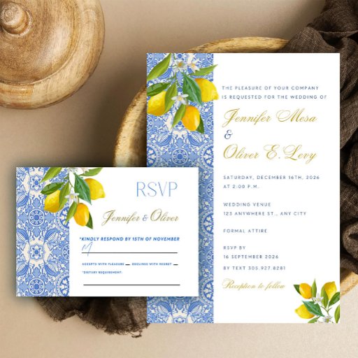 Italian Tiles Lemon Theme Wedding InvitationsCriado por Gloria Designs Boutique