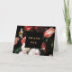 Cartões de agradecimentos Invitation Dark Red Floral. O texto colorido de cobre é totalmente personalizável. Nossa coleção de suítes de casamento ALEXANDRIA está cheia de flores em fundo preto e vermelho, tudo usando um texto de cor de cobre. Moody, elegante e moderno.