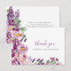 Cartões de agradecimentos de lavanda. Apresentando um elegante roteiro de caligrafia e um elegante trabalho de arte de cor d'água pintado à mão em lavanda macia, rosa pincelado, arroto profundo e roxo vibrante, adornada com flores silvestres, rosas e verde elegante. Perfeito para primavera, verão, e chás de panela de outono, cada item nesta coleção sussurra de amor, encantamento e romance de eterno definindo o palco para sua celebração inesquecível. Que a beleza da natureza e o charme da elegância vintage adornem seu dia especial com nossa coleção cativante.