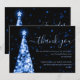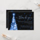 Marinho de Árvore Elegante e Festiva do Natal Blue Wedding "Obrigado" modelo de Cartão, com obrigado que você escreve, brilha na Árvore de Natal e no roteiro de tipografia moderna.