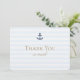 Este modelo de cartões de agradecimentos náutico personalizado único é perfeito para agradecer aos hóspedes e desejos por diversas ocasiões, incluindo casamentos, nascimentos, aposentadorias e outros marcos. Ele apresenta uma âncora azul marinho e texto em um tom de ouro elegante em uma base que inclui listras horizontais de azul mole. A âncora não é uniformemente colorida, há speck sem cor, que empresta um aspecto quente, curado e sabor feito à mão que nos lembra de um impressão de bloco de madeira ou de uma escultura de madeira. Na verdade, a imagem de âncora que inspirou este design foi originalmente feita com um simples selo, que é responsável pelo seu encanto. No verso incluímos algum texto de espaço reservado no mesmo tom dourado. Você pode incluir seu(s) nome(s) no final de sua mensagem personalizada ou deixá-los fora a favor de assiná-la manualmente. E, claro, se preferirem, podem fazer o vazio de trás completamente para que possam escrever a vossa mensagem inteiramente à mão. Em qualquer caso, apenas certifique-se de excluir nosso texto de marcador de posição! Você também pode alterar a cor de fundo no verso. Simplesmente o tornamos transparente, para que a cor do seu papel seja a cor base. Mas talvez você prefira selecionar uma cor. Também selecionamos um papel bem texturizado chamado 'linen' que você pode ver mais claramente se usar o recurso de zoom para ver nossa placa de amostra. Claro que você também pode mudar o tipo de papel, e pode editar a design para apresentar cantos nítidos em vez dos cantos arredondados que escolhemos. Use as ferramentas intuitivas de design e sua inspiração para tornar este cartões de agradecimentos náutico exclusivamente seu! E por favor verifique nossa coleção náutica para vários itens relacionados, incluindo este design em formato vertical!