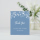 Um cartões de agradecimentos para um Chá de fraldas. Uma cor de fundo azul empoeirada. Decorado com estrelas brancas. Voltar: Personalize e adicione seu nome e nota de agradecimento. 1 folha = 1 cartões de agradecimentos impresso borda a borda.