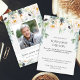 Rosas brancas e cartões de agradecimentos de folhagem de eucalipto. Uma mensagem elegante de funeral "Obrigado", que pode ser personalizada com uma foto do seu amado. Todo o texto é editável, envie seu amor e obrigados para a família e amigos que o apoiaram durante seu tempo de luto.