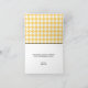 Estas placas de agradecimento, todas elegantes, são desenhadas com "obrigado" em letras amarelas em negrito e itálico em um semicírculo branco sobre um padrão de som amarelo e branco. Este padrão é uma escolha na moda para Chás de panela e aniversários. O dentro é impresso por personalização com seu próprio texto ou o texto modelo pode ser facilmente apagado para deixar o dentro dessas placas vazio para manuscrito seus sentimentos de obrigados. Sem ordem mínima. São aplicáveis descontos em massa.