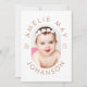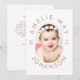 Um design moderno com sua foto favorita em forma oval fofa, rodeada pelo nome do seu bebê e pelas estatísticas de natalidade em uma simples tipografia bege. O inverso apresenta a sua mensagem personalizada. Personalize este obrigado exclusivo e minimalista que você / cartão com fotos de anúncio de nascimento clicando no botão "Personalizar"!