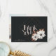 Mostre seu apreço sincero com este elegante casamento de 7 x 5", obrigado cartas com as palavras, "Obrigado", com flores pretas e ferrugem em fundo preto. As costas das cartas apresentam um ponto para sua foto favorita, seu pequeno coração, a mensagem, "com amor do novo", uma caixa de mensagem opcional e um espaço reservado para os novos nomes.