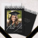 Esta foto em preto e local - Obrigado Cartão de Graduação vai perfeitamente com o convite de Festa de formatura correspondente na coleção. Elegante e bonito para o seu formando.