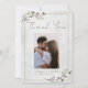 Cartões de agradecimentos minimalista de quadros modernos elegantes. Obrigado seus amigos e parentes com uma bela foto do dia especial dos recém-casados em estilo com nosso elegante obrigado de casamento. Colocado sobre um fundo texturizado, uma simples e sofisticada estrutura de ouro esconde a nota de agradecimento. O escrevendo de script adiciona um toque de romance e charme, e a foto lembra aos seus entes queridos a sua ocasião importantíssima. Que este design seja o primeiro retrato da sua nova jornada juntos. O quadro é tinta colorida e não dourada estampada.